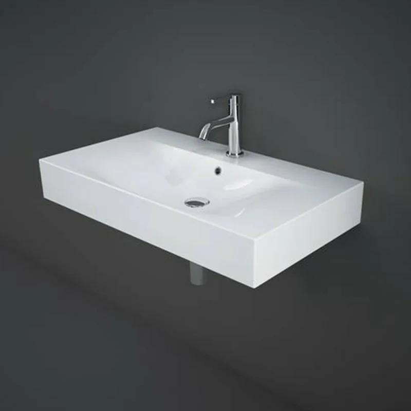 Lavabo sospeso 80cm in ceramica bianca con monoforo per rubinetto Rak Des