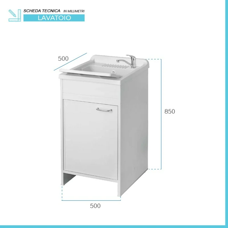 Mobile lavatoio 50x50 cm vasca in resina con asse e kit di scarico