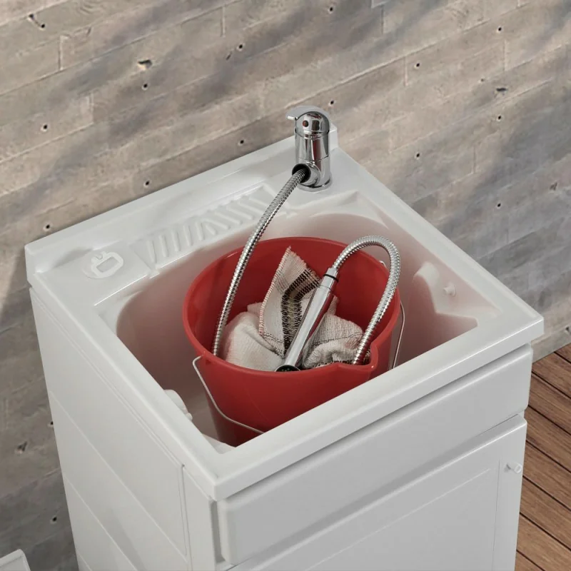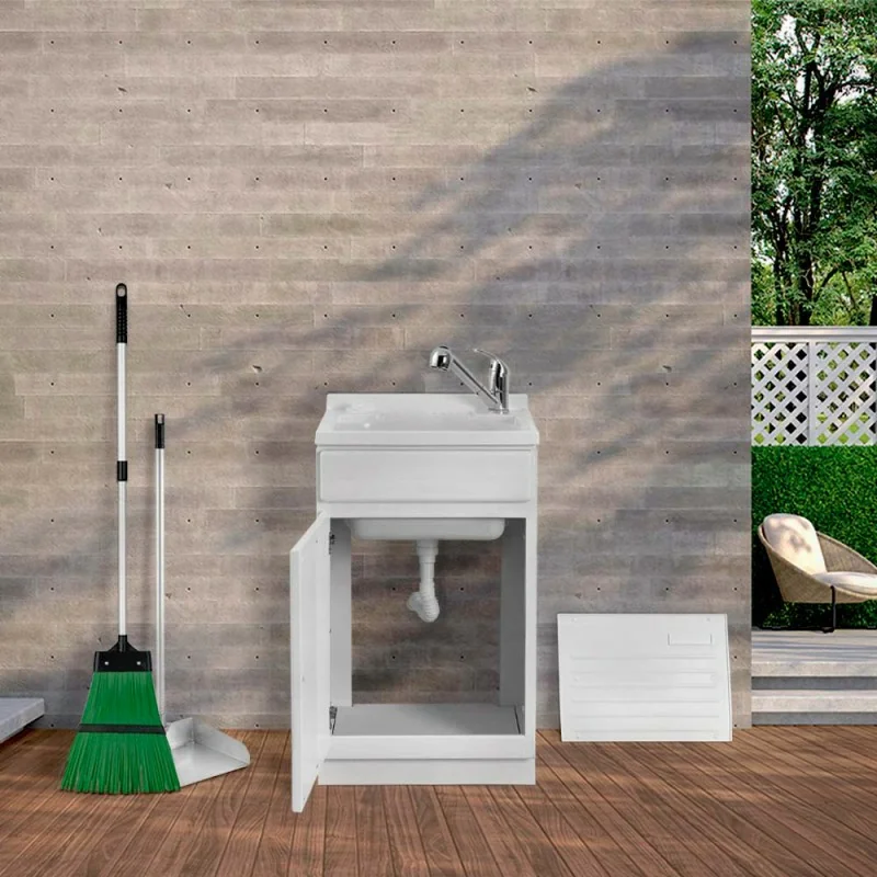 Mobile Lavatoio in Kit 50x50 cm con Vasca in Resina colore Bianco