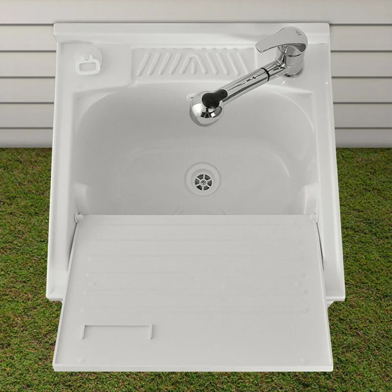 Competitivo economicamente senza venir meno a funzionalità, qualità ed affidabilità, il mobile lavatoio proposto è adatto all’ambiente esterno quanto a quello interno, grazie all’impiego della resina resistente all’umidità, all’usura e agli urti accidentali.