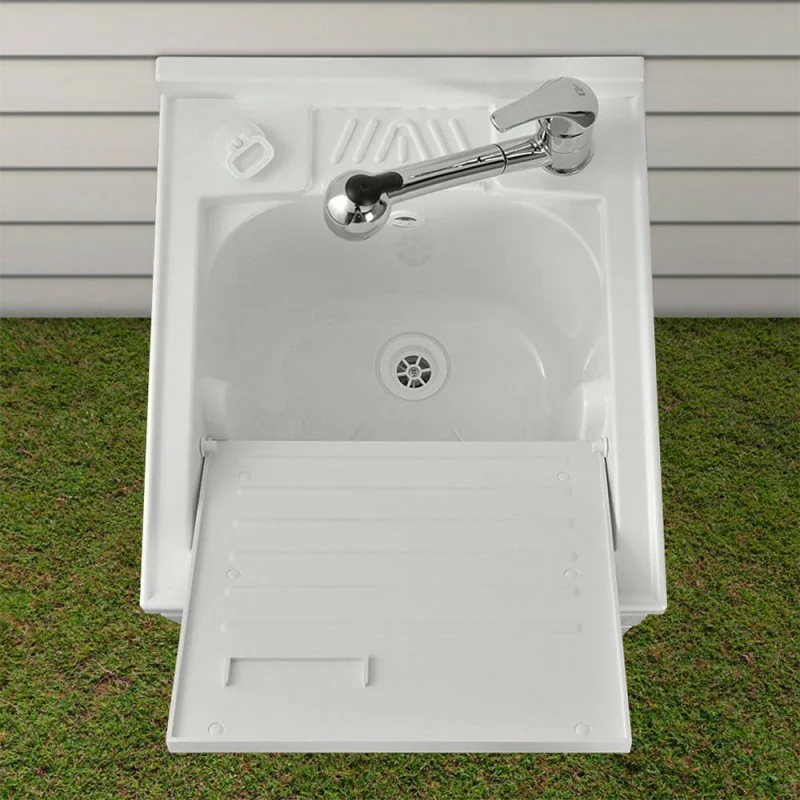 Competitivo economicamente senza venir meno a funzionalità, qualità ed affidabilità, il mobile lavatoio proposto è adatto all’ambiente esterno quanto a quello interno, grazie all’impiego della resina resistente all’umidità, all’usura e agli urti accidentali.