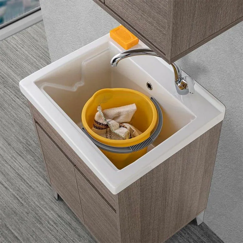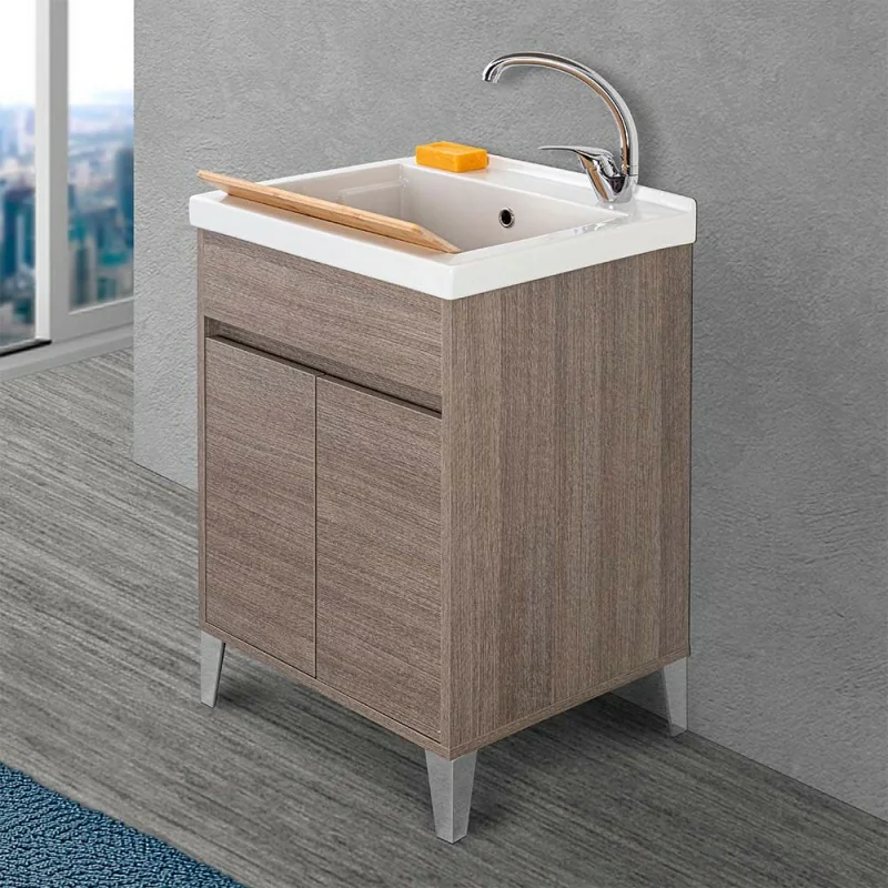 Mobile lavatoio 60x50 cm linea Way rovere scuro con vasca in ceramica