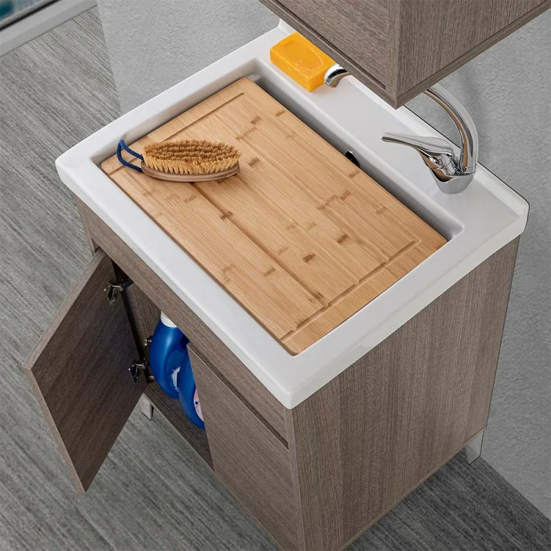 Mobile lavatoio 2 ante 60x50 cm rovere scuro con vasca in ceramica linea Way