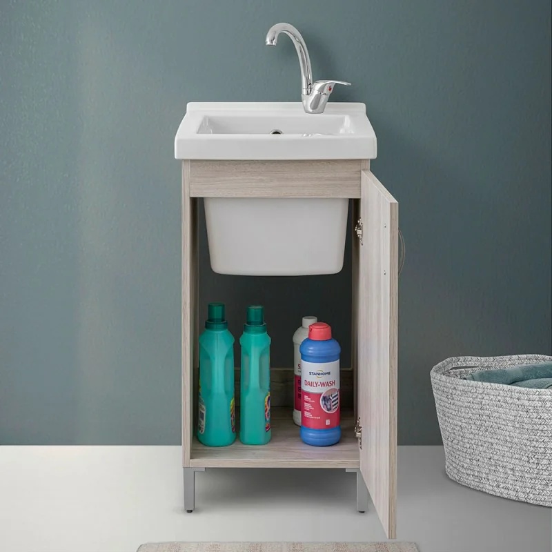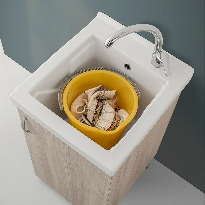 Lavatoio in ceramica 45x50 con mobile Olmo completo di piletta e scarico
