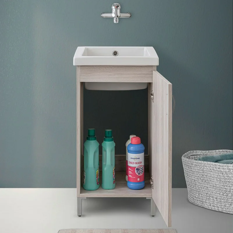 Il mobile lavatoio è un elemento indispensabile per la tua lavanderia. Realizzato in legno finitura olmo, viene fornito in kit di montaggio completo di istruzioni chiare e dettagliate, si monta in pochi minuti.