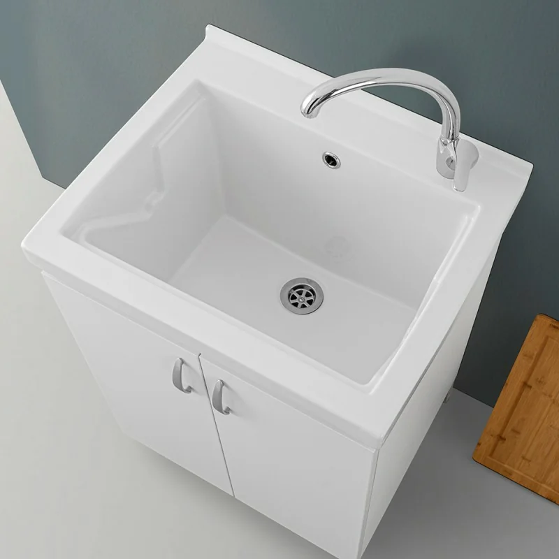 Mobile lavatoio 2 ante 60x50 cm bianco con vasca in ceramica