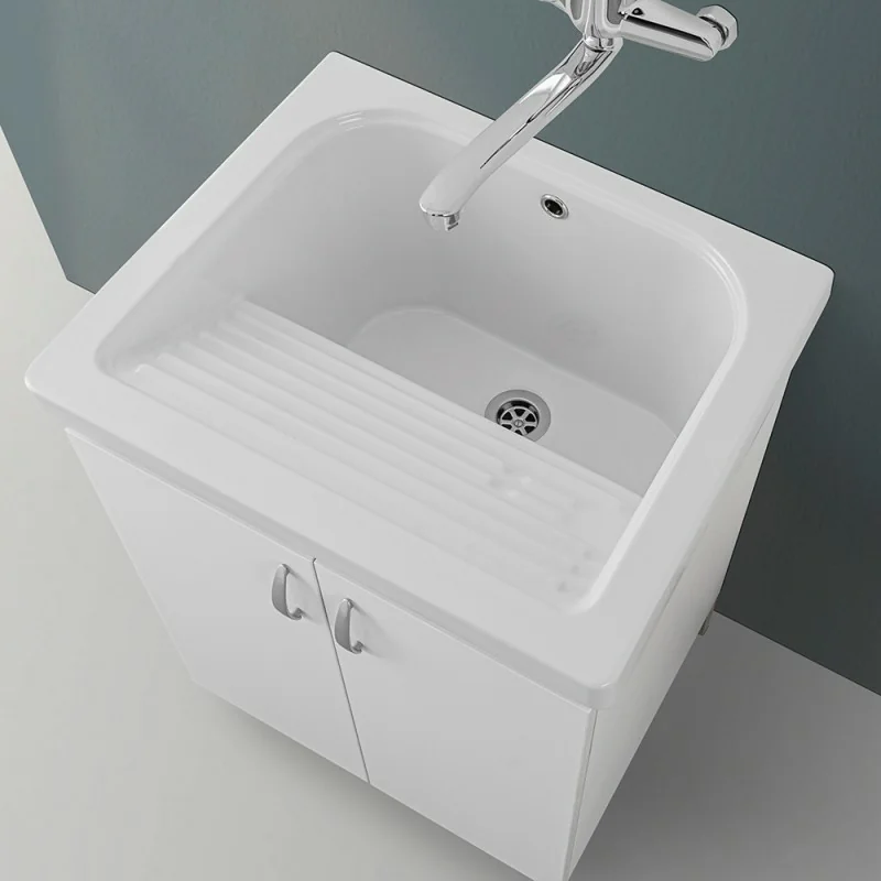 Mobile lavatoio 60x50 cm bianco in ceramica con strofinatoio integrato