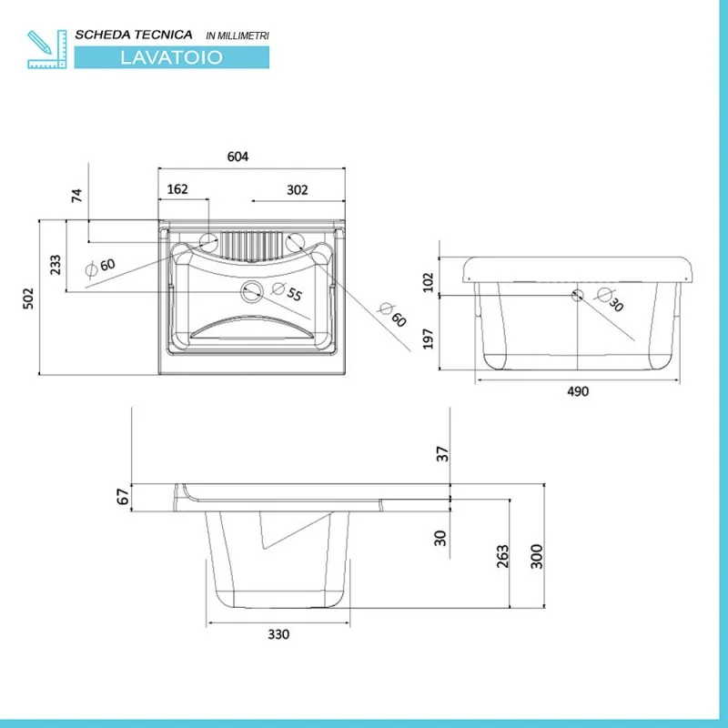 • Dimensioni vasca:L 60,4 x P 50,2 x H 30 cm;