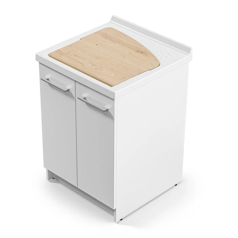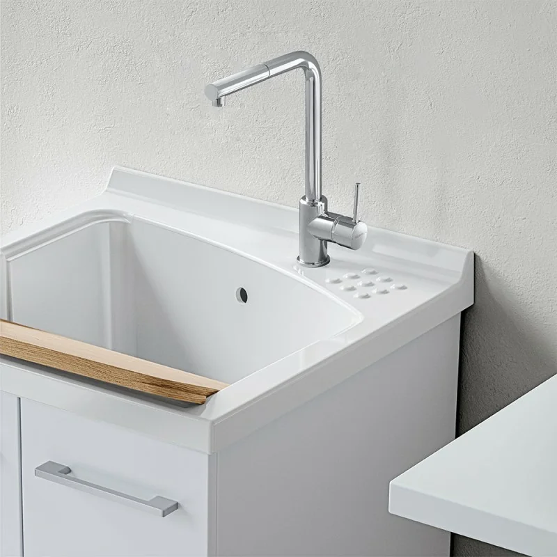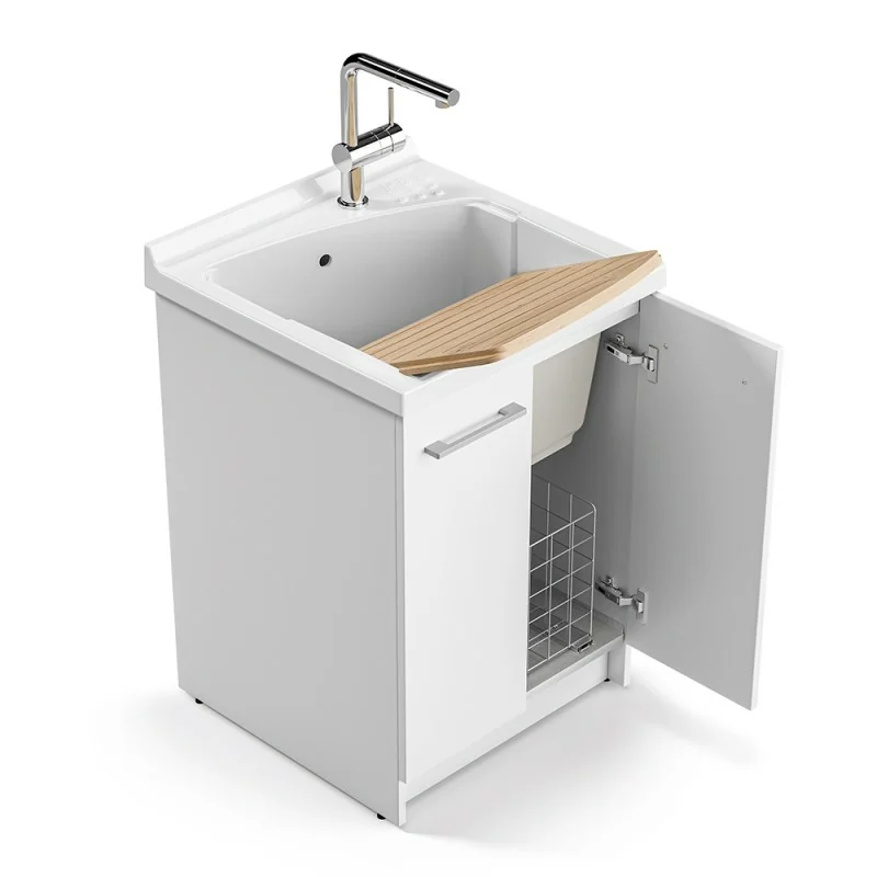 Mobile lavanderia con lavatoio Revine Ceramica Dolomite,foro per troppo pieno e asse lavapanni in legno