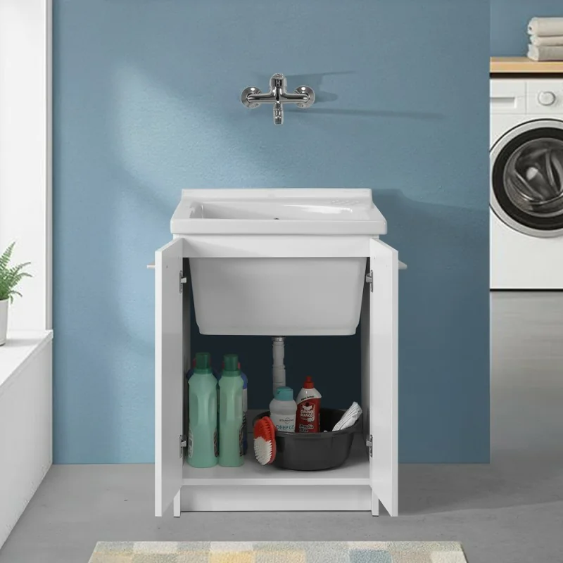 Mobile lavatoio 61x61 cm a due ante con vasca in ceramica Revine
