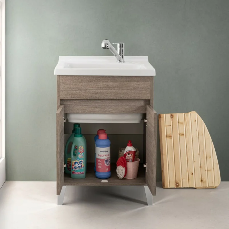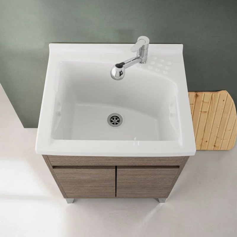 Mobile lavatoio 60x50 rovere scuro Way con vasca in ceramica Dolomite