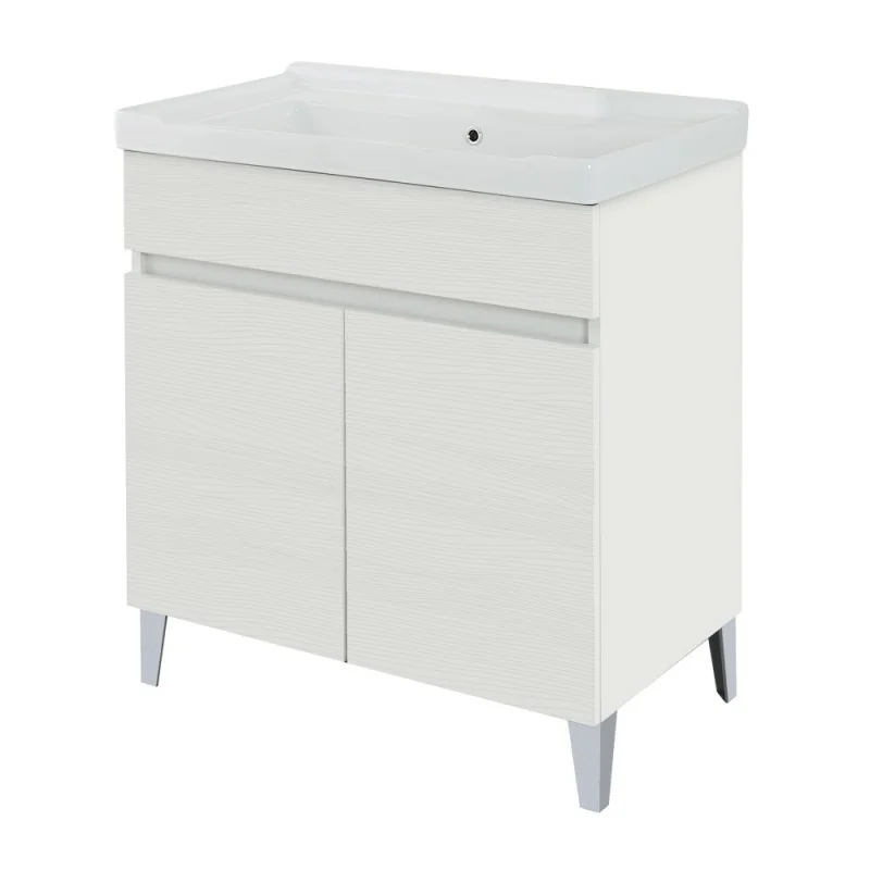 Mobile lavatoio 79x46,8 cm bianco frassinato con vasca in ceramica bianca