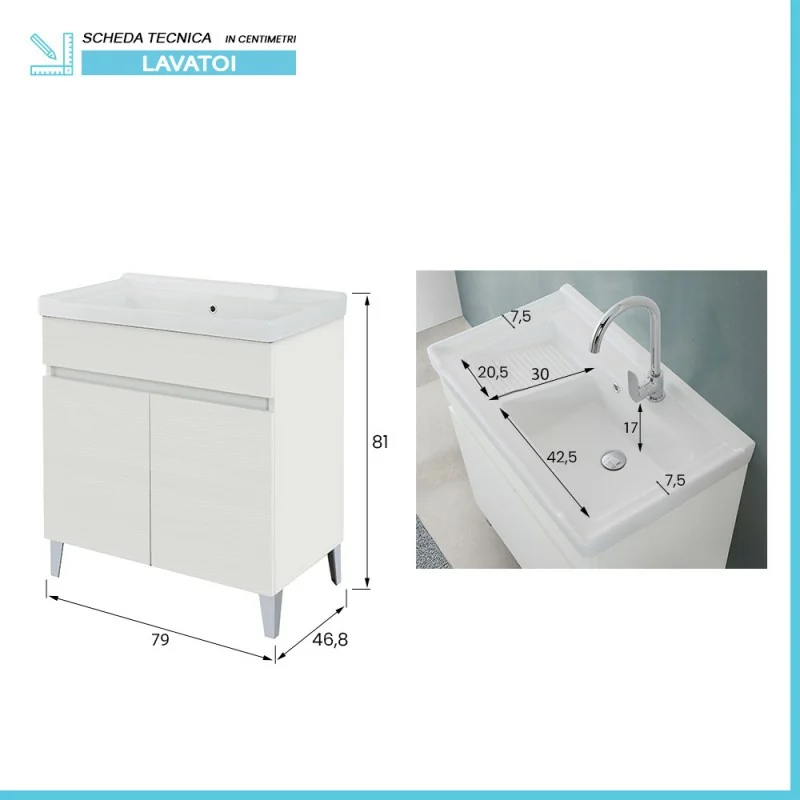 Mobile lavatoio 79x46,8 cm caratteristiche tecniche: