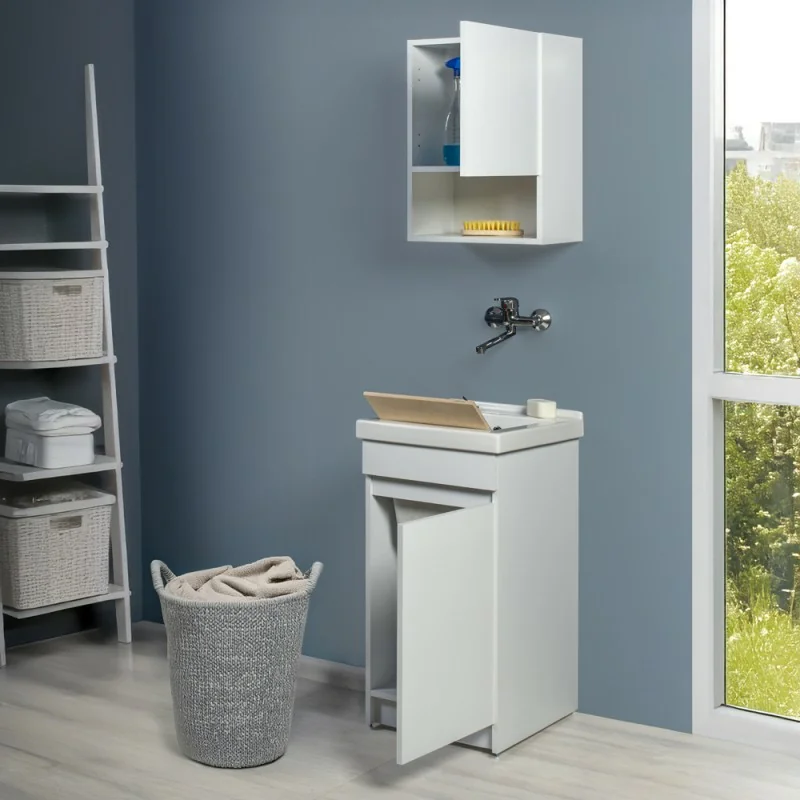 Mobile lavatoio 45x51 cm bianco opaco con vasca in ceramica e kit scarico