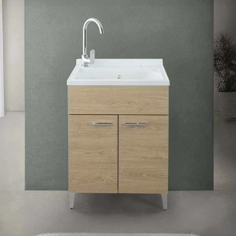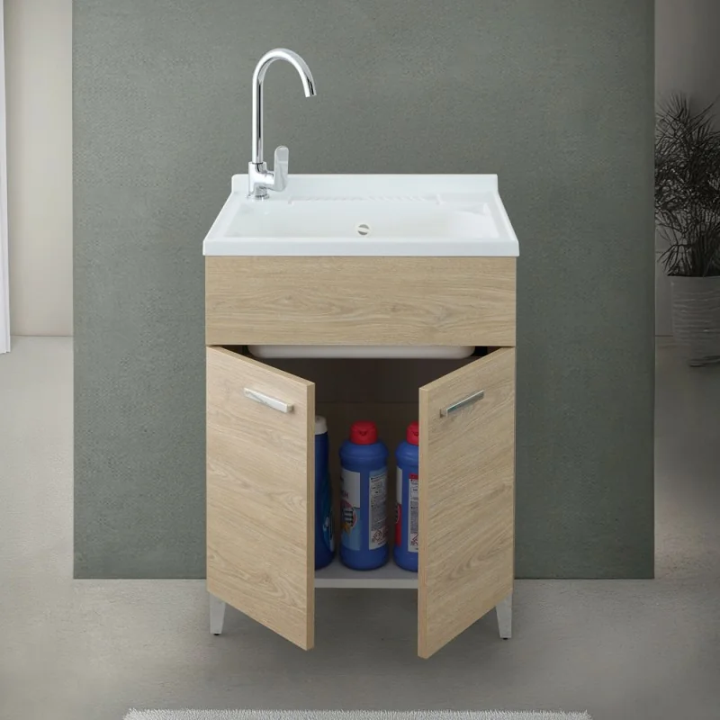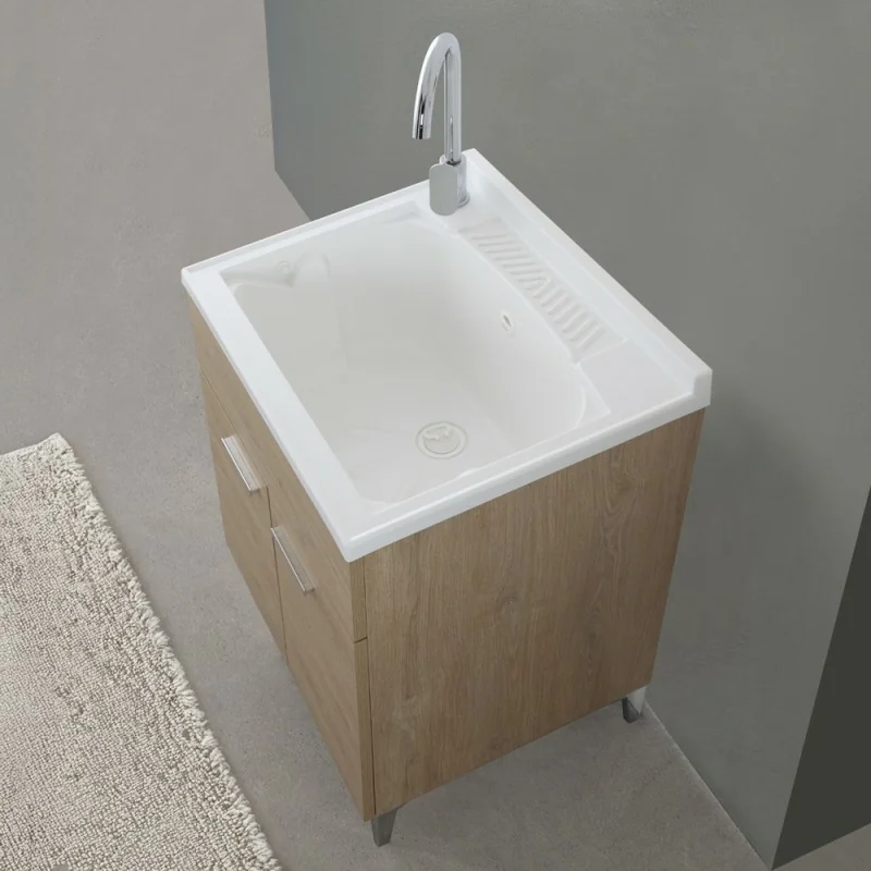 Mobile lavanderia rovere con vasca in resina e kit di scarico