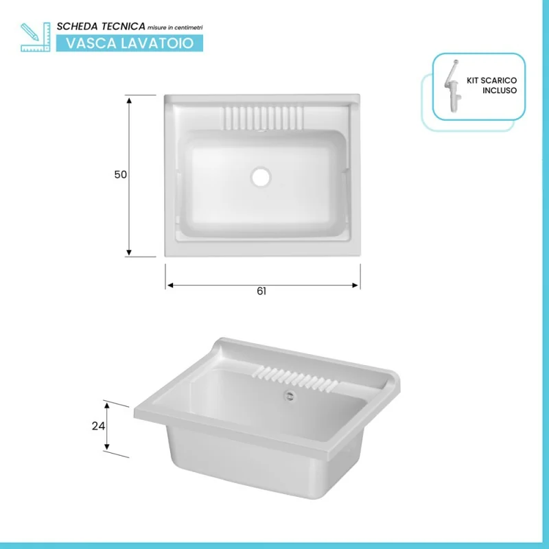 • Dimensioni vasca: L 61 x p 50 x H 24 cm;