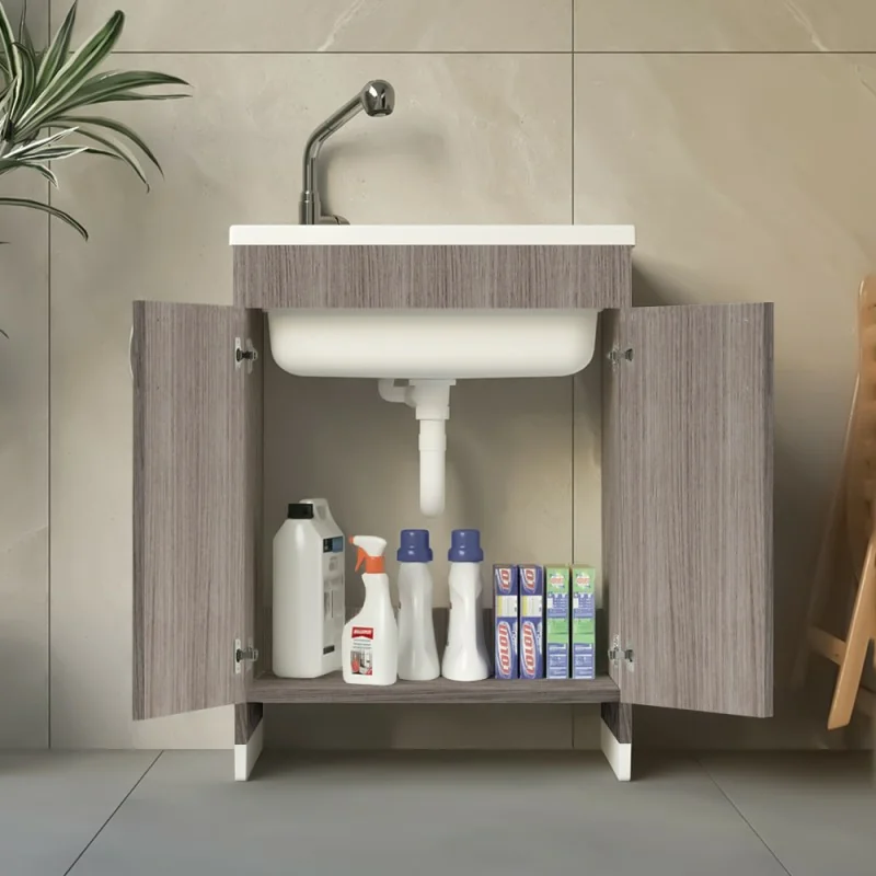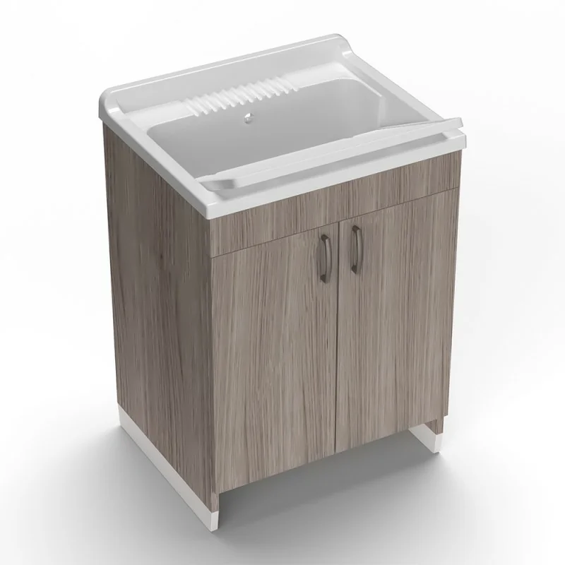 Mobile lavanderia rovere con vasca in resina e kit di scarico Ikaro