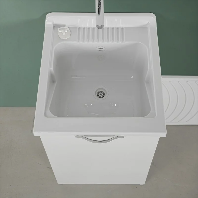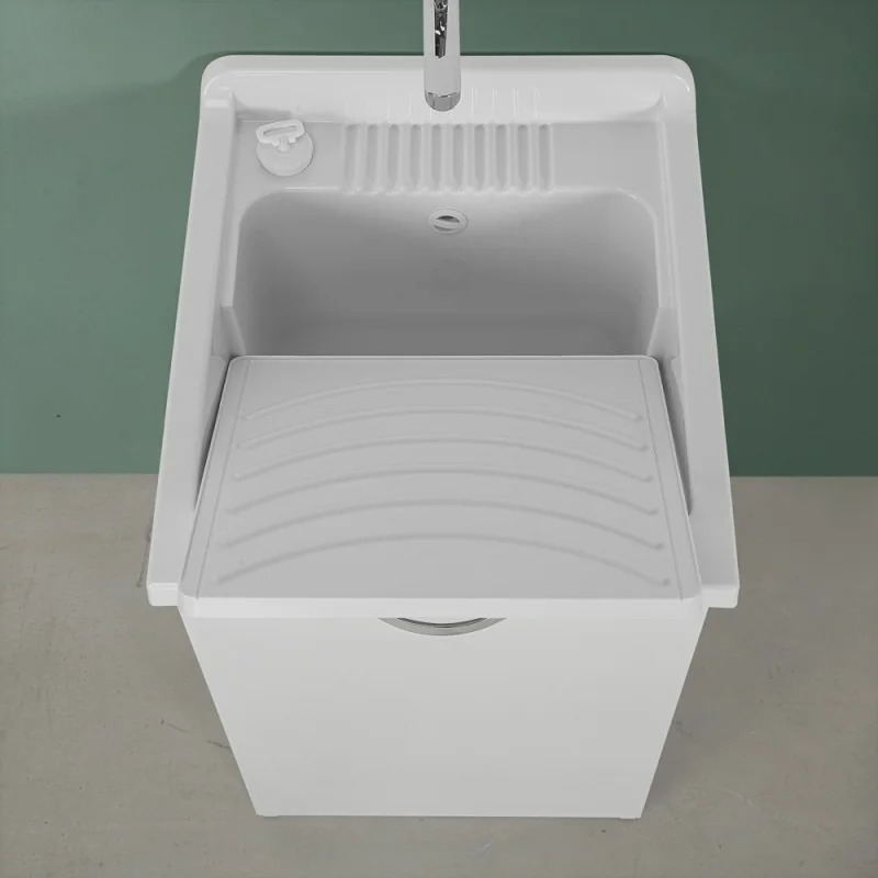 Il mobile lavatoio Pilar, compatto e versatile, è l'ideale per ottimizzare gli spazi in ogni casa. Realizzato in legno bianco, misura solo 47 x 50 cm e si integra con eleganza in qualsiasi ambiente. L'anta unica offre un vano capiente per riporre ogni cosa, mentre il lavabo integrato, in plastica resistente, include un pratico strofinatoio, perfetto per il bucato a mano. Unisce funzionalità e design salvaspazio in un'unica soluzione.