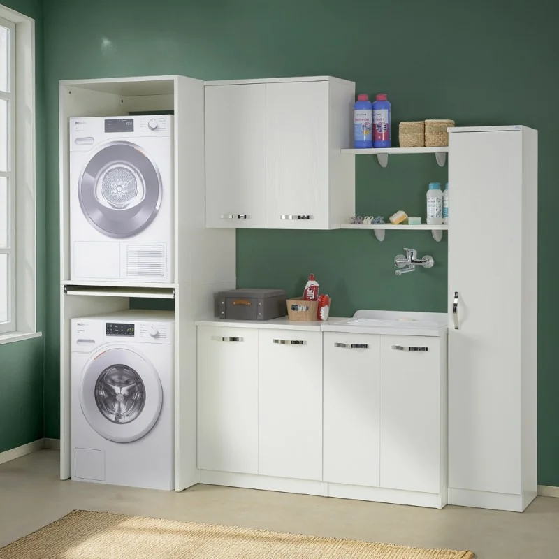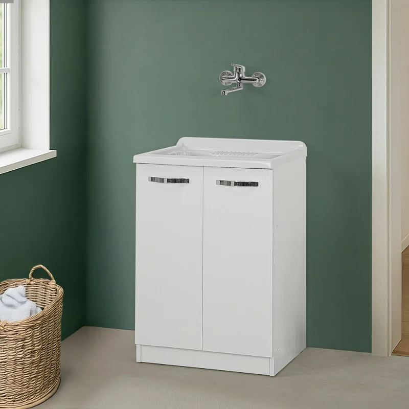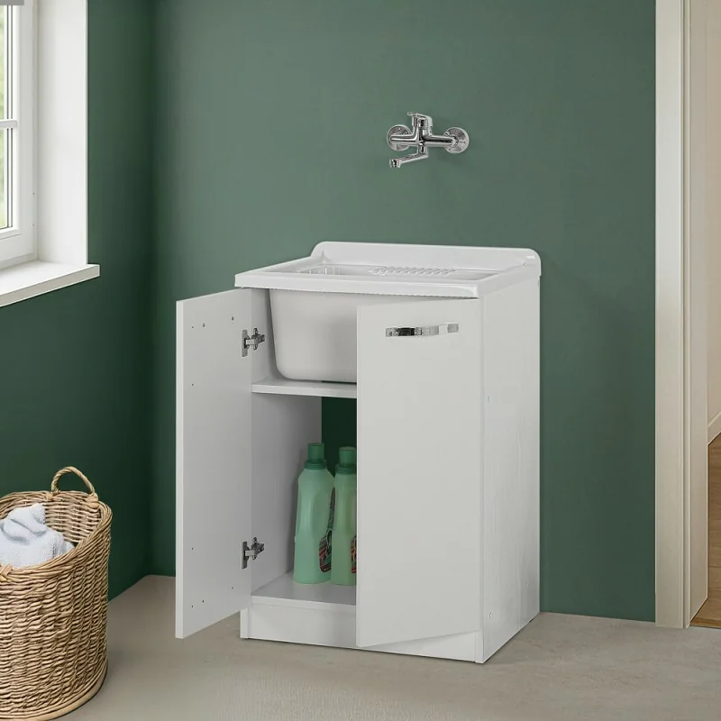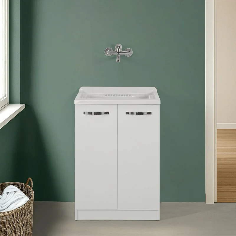 Mobile lavatoio 60x50cm in legno bianco salvaspazio 2 anta linea Pilar