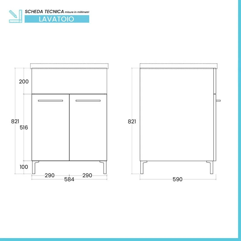 Mobile lavatoio 60x60 cm caratteristiche tecniche: