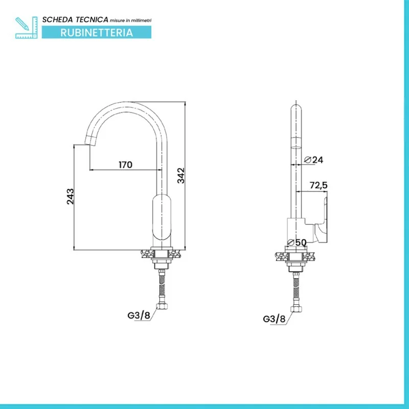 • Flessibili di collegamento inclusi, attacco 1/2" G standard;
