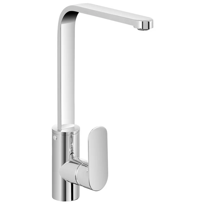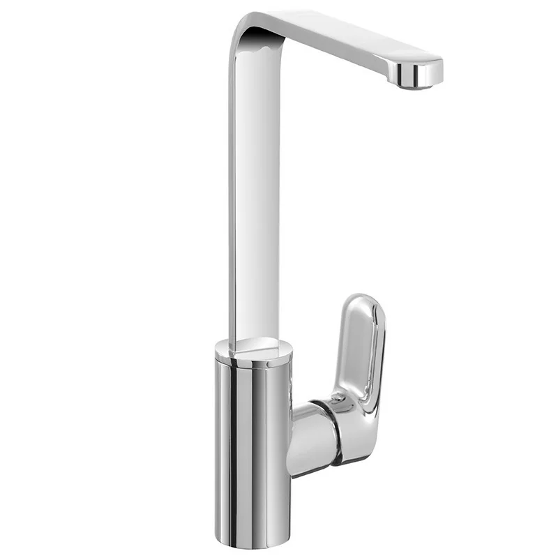 Miscelatore lavello monocomando con canna alta girevole cromo per cucina e lavanderia