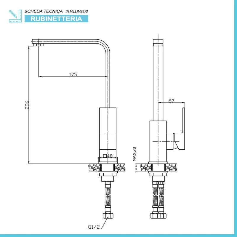 Miscelatore Lavello con Canna Alta Quadrata Miscelatore Lavanderia con Canna Alta Quadrata