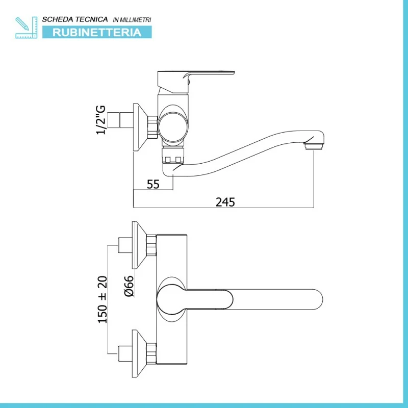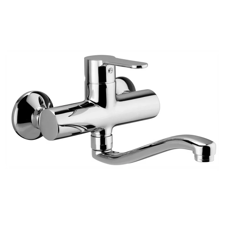 Il miscelatore a muro proposto è ideato sia per l’ambiente cucina che per la lavanderia, ha una canna di erogazione a tubo serpente girevole con una profondità di 24.5 cm. È interamente realizzato in ottone con finitura cromata, resistente alla corrosione ideale per interni ed esterni.