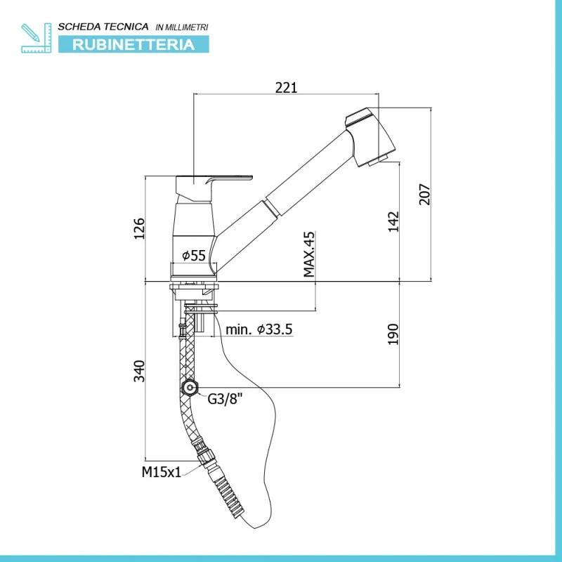 • Tipologia: miscelatore lavello con doccia estraibile;