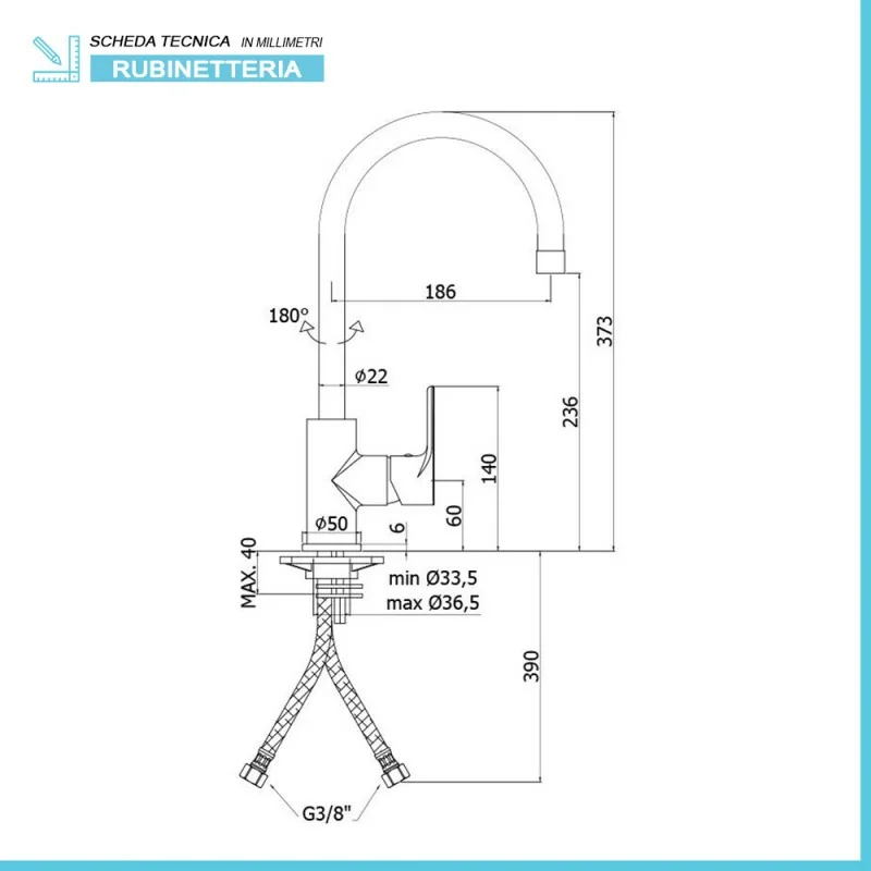 • Tipologia: miscelatore lavello con canna alta girevole;