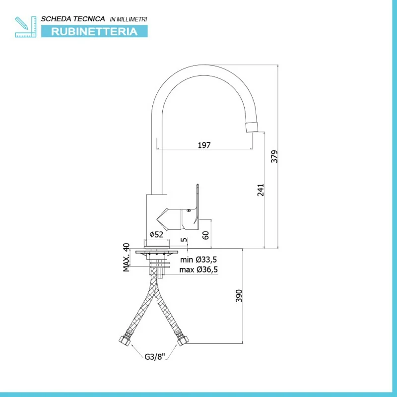 • Tipologia: miscelatore lavello con canna alta girevole;
