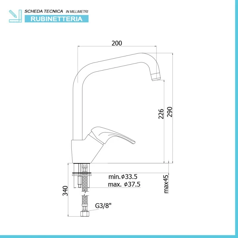 • Tipologia: miscelatore lavello con canna alta girevole;