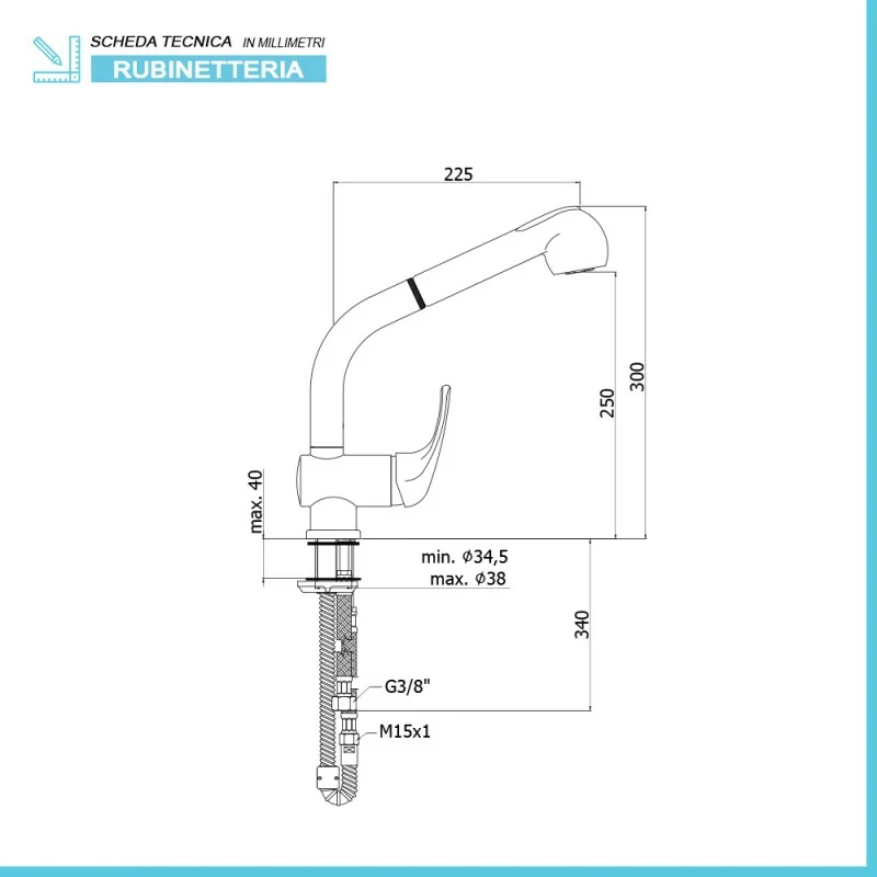 • Tipologia: miscelatore lavello con doccia estraibile e leva laterale;