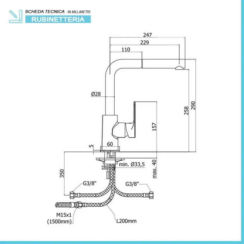 • Tipologia:miscelatore lavello con doccia estraibile;