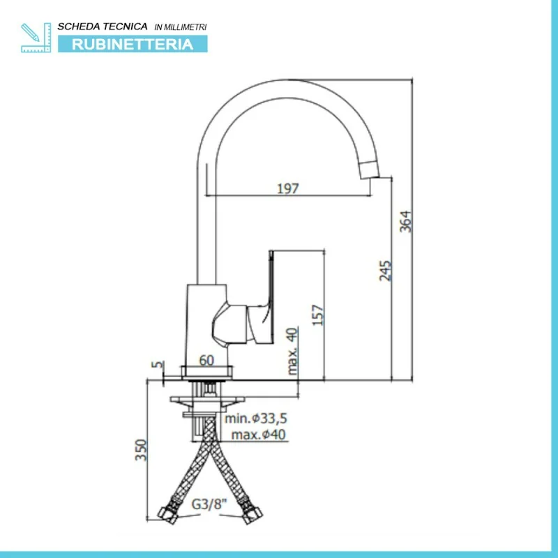 • Tipologia:miscelatore lavello con canna alta girevole;