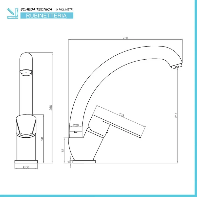 Miscelatore lavello - in ottone nichel nero satinato con canna alta girevole per cucina e lavanderia serie Lizzy