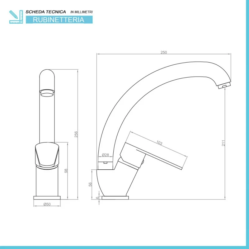 Miscelatore lavello - in ottone cromato con canna alta girevole per cucina e lavanderia serie Lizzy