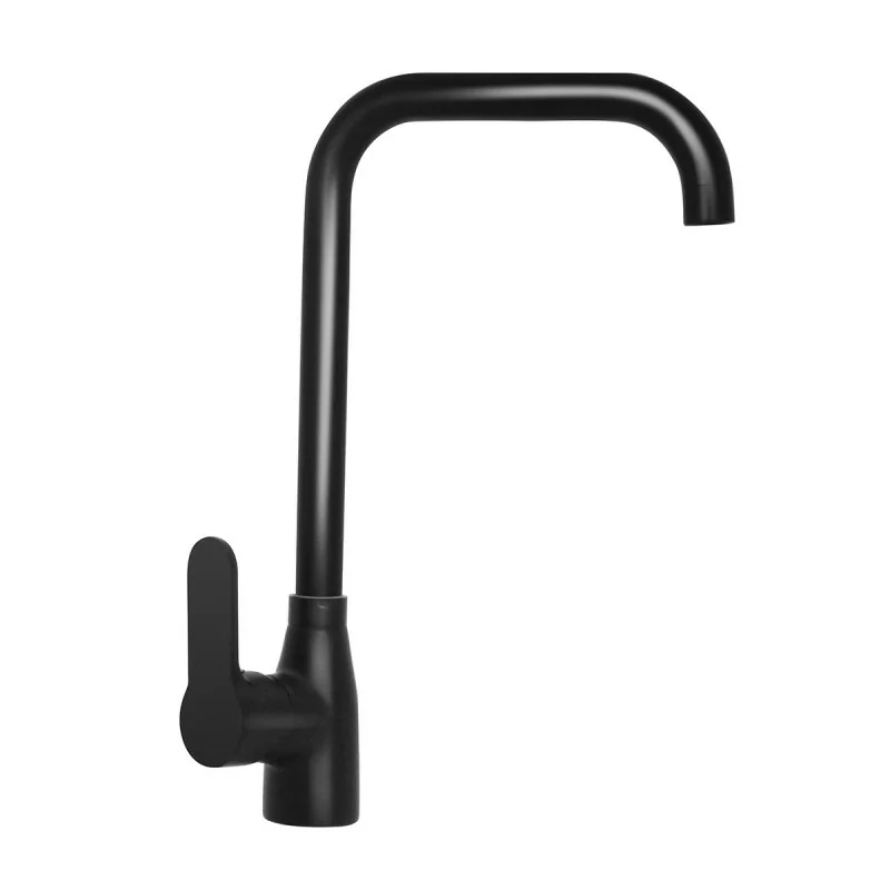 Rubinetto miscelatore lavello con canna alta girevole in ottone nero opaco serie Paco