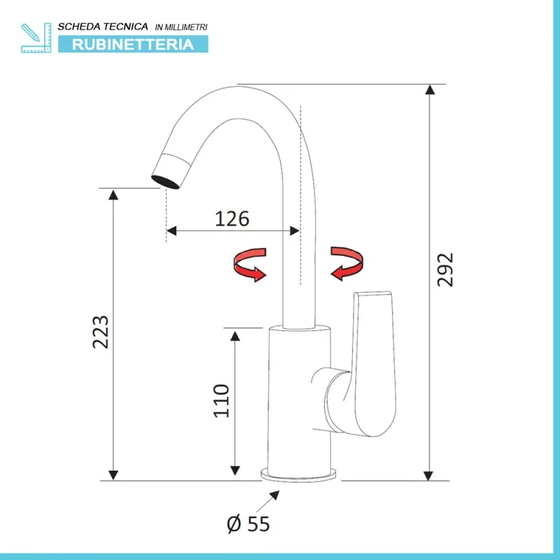 Il miscelatore lavello è realizzato in ottone di alta qualità,resistente alla corrosione e destinato a durare nel tempo. È dotato di innovativa cartuccia a dischi ceramici e bocca alta girevole,ideale per dirigere il flusso d’acqua.