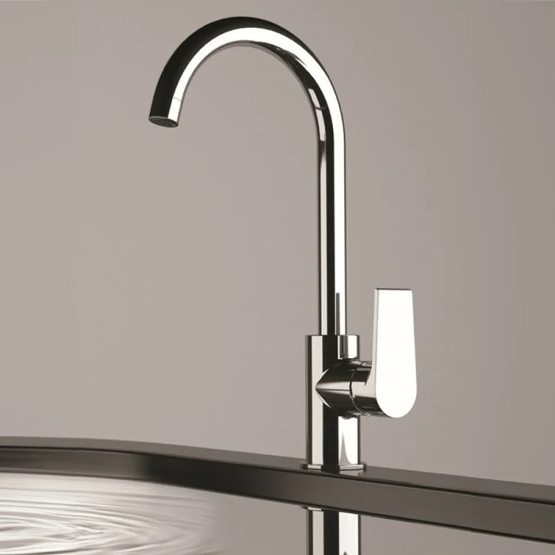 Rubinetto cucina o lavanderia in ottone con leva monocomando e bocca alta orientabile