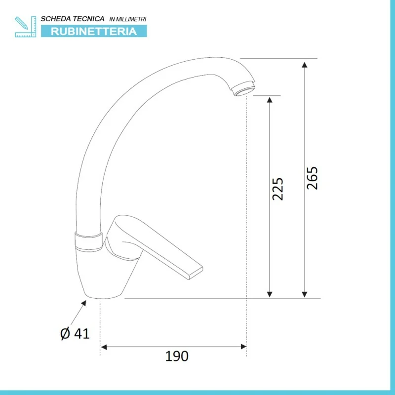 Rubinetto cucina o lavanderia in ottone con leva monocomando e canna orientabile