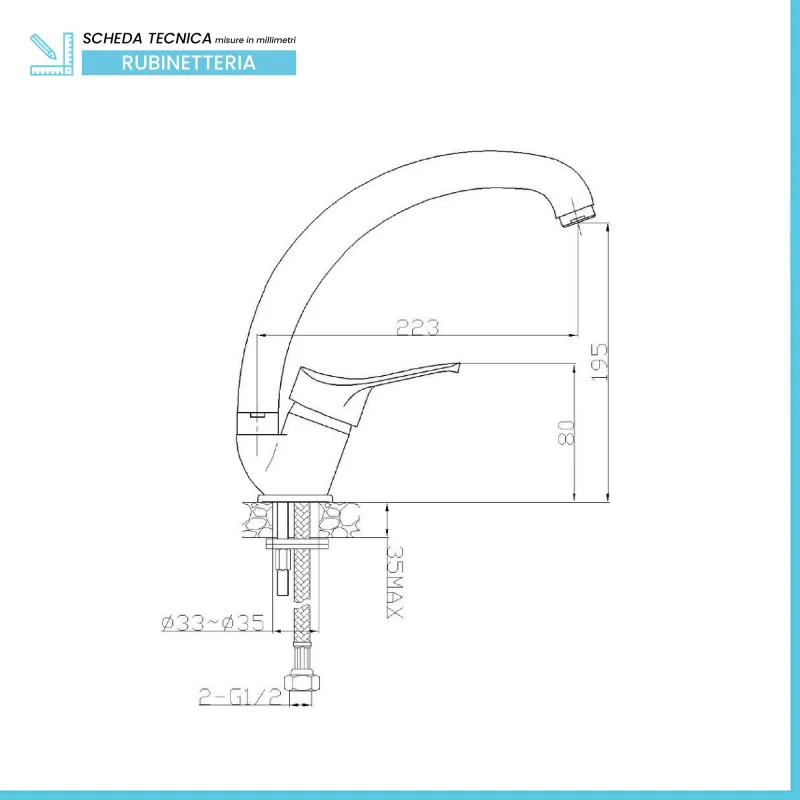 Rubinetto cucina a canna alta in ottone nero con leva monocomando Remy Scheda tecnica Rubinetto cucina a canna alta in ottone nero con leva monocomando Remy