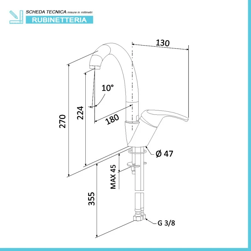 Rubinetto lavello in ottone cromo di Rubinetterie Mariani Linea Astro Scheda tecnica Rubinetto lavello in ottone cromo di Rubinetterie Mariani Linea Astro