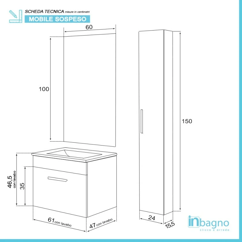 Il Mobile Salvaspazio Sospeso è la giusta soluzione per chi non possiede ampie stanze da bagno,disponibile in diverse colorazioni.