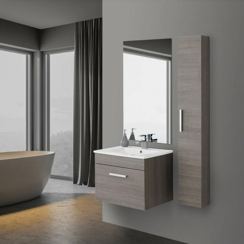 Il Mobile Bagno Salvaspazio si presenta con uno stile sobrio dalle finiture moderne. La base con una profondità di 47 cm lo rende ideale per i piccoli spazi.