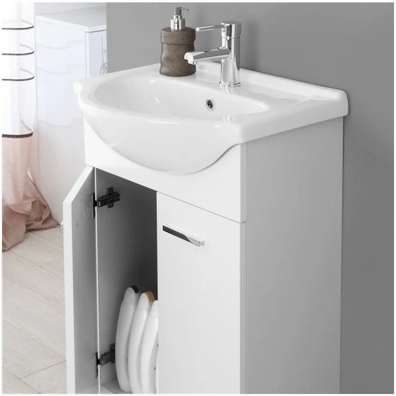 Mobile bagno a terra 55 cm bianco completo di lavabo e specchio Desya