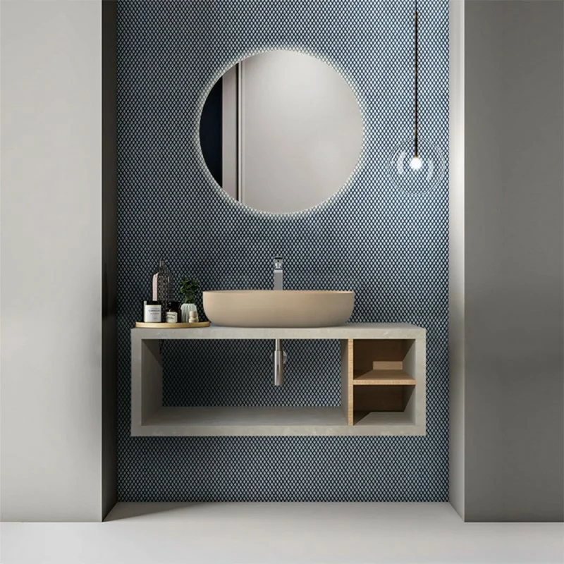 Questo complemento ti permette di organizzare al meglio gli spazi all'interno del tuo bagno. Utilizzabile come complemento della composizione rettangolare sospesa, coniuga innovazione e praticità in un'unica soluzione e mantiene i tuoi spazi sempre in ordine. L'elemento si compone di pannelli in legno nobilitato con elevata resistenza alle infiltrazioni. Per una pulizia impeccabile e sicura si consiglia di utilizzare detersivi liquidi neutri.