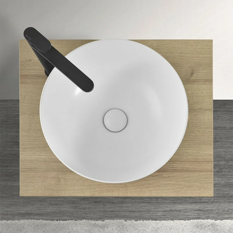 Il top per lavabo da appoggio è perfetto per chi cerca una soluzione salvaspazio con un tocco di design contemporaneo. Realizzato con robusti pannelli in legno nobilitato, garantisce un'elevata resistenza all'umidità. La sua superficie non preforata offre la libertà di personalizzare la posizione del lavabo durante l'installazione