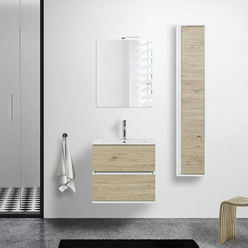 Mobile bagno sospeso 60 cm Duble rovere africa con lavabo e specchio