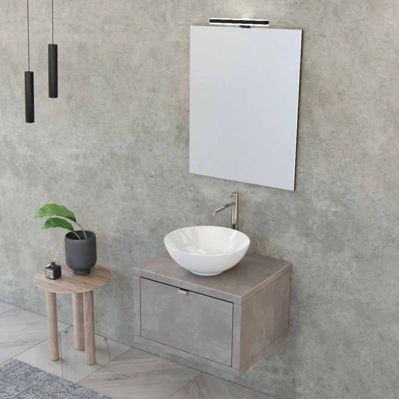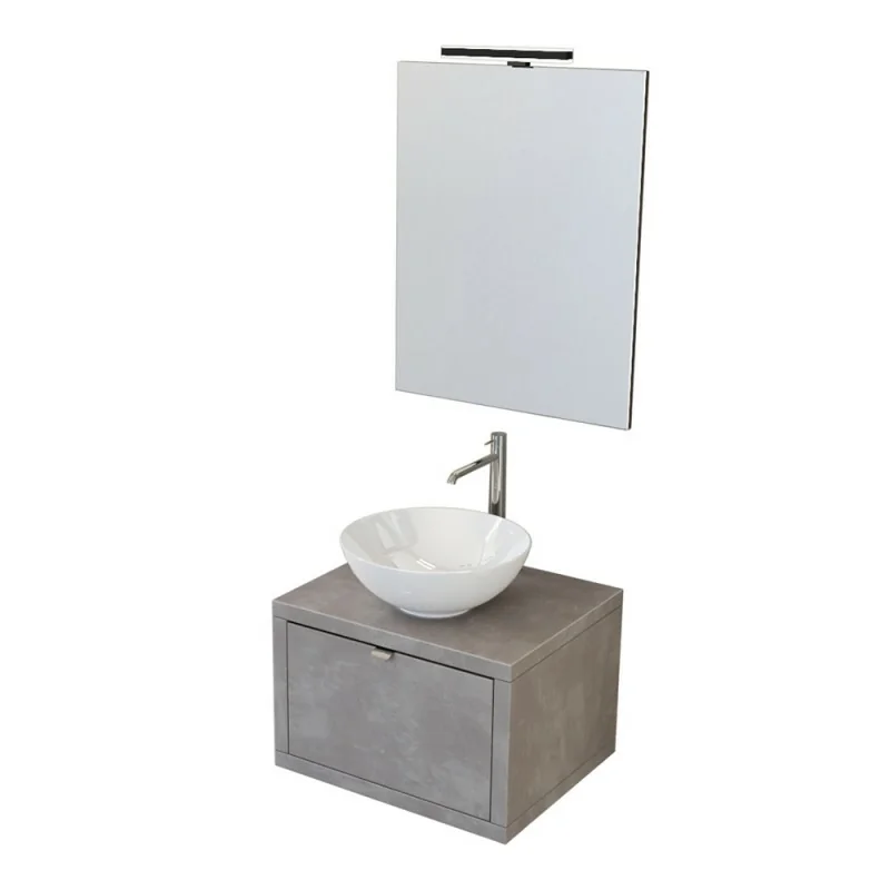 Mobiletto bagno sospeso 60 cm Master grigio cemento con lavabo appoggio e specchio
